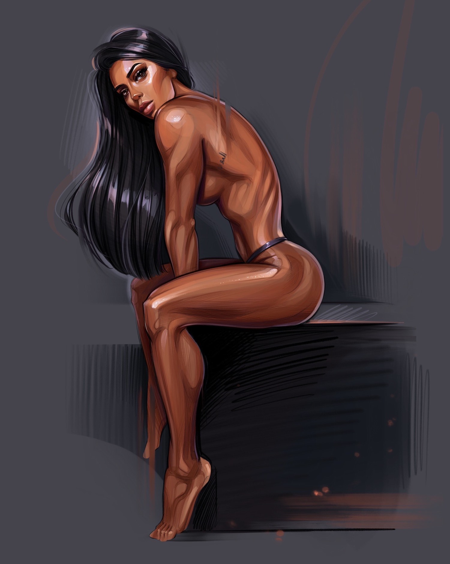Emerald II is depicting the moment when the Queen of the Jungle just took a bath in the jungle bathtub and when she finished she got up and stretched her body naturally.